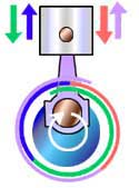and rotate the crankshaft. Four cranks together complete the crankshaft;