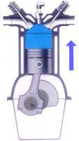 The inlet valve is closed, and exhaust valve open. The piston