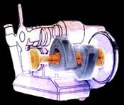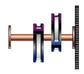 turns the shaft which turns the flywheel. The turning of the flywheel